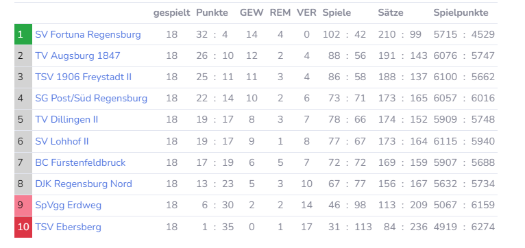 Der 6. April 2024 – der Tag der Entscheidung. Wird es unserer ersten Mannschaft gelingen, sich am letzten Spieltag in München gegen den SV Lohhof II und den TSV Ebersberg durchzusetzen? Können der TV Augsburg und Post Süd Regensburg in ihren Spielen noch aufholen und Fortuna einholen?